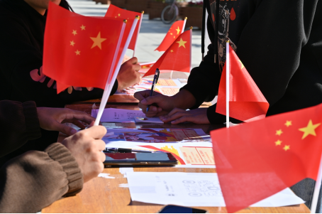 在蓝天白云下,一面面鲜艳的五星红旗迎风招展,它们不仅是国家的象征,更是无数中华儿女心中的信仰与骄傲。活动现场,参与者们纷纷与国旗合影,有的手持小国旗,笑容灿烂;有的多人协作,摆出创意造型,记录下这难忘的瞬间。每一张照片,都承载着对祖国的深情厚谊,每一道光影,都映照出青年一代的蓬勃朝气。
