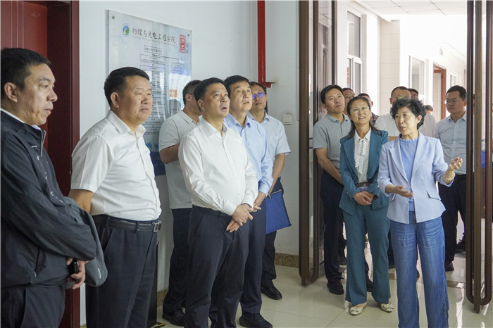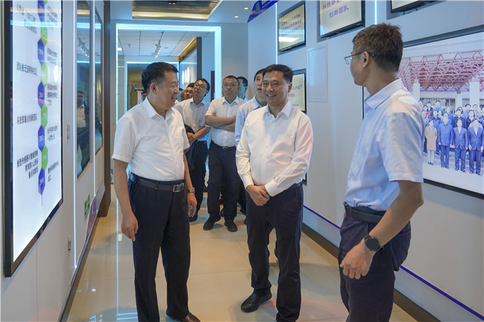 在沈兴全的陪同下,陈雷一行先后参观了公司新型传感器与智能控制教育部重点实验室、物理与光电工程公司有机光电子材料与器件实验室、微纳传感与人工智能感知山西省重点实验室,听取科研人员对相关研究领域、项目进展、科研成果等方面的情况介绍,了解公司在航天科工、电子信息领域具有重大影响力和创新性的成果。