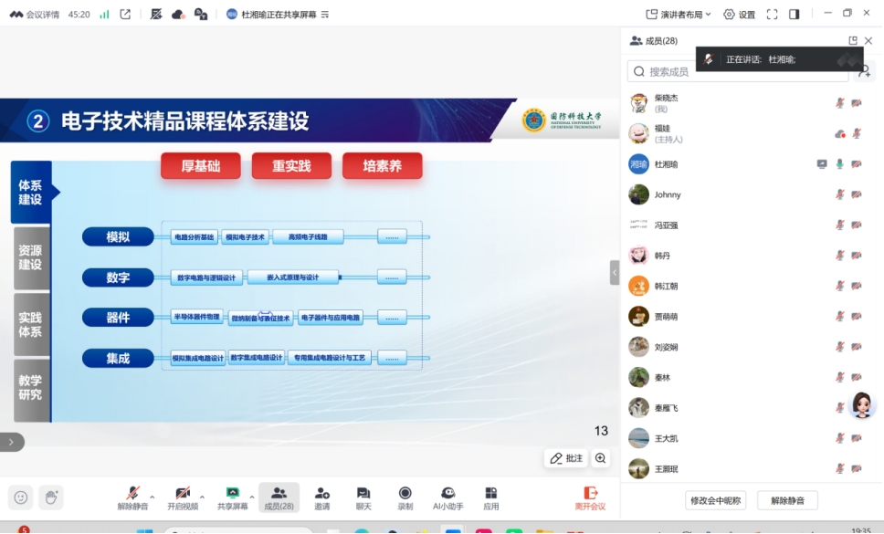作为电子技术教育领域的领军专家,杜湘瑜教授深耕教学一线多年,不仅是牵头国家级一流课程建设、教育部战略性新兴领域“十四五”规划教材建设团队核心成员,更荣获国家教学成果二等奖、军队科技进步一等奖等多项荣誉,主持10余项省部级以上教改项目,出版7部电子技术领域精品教材,其在数字教材研发与智慧教学实践中的深厚积淀,为本次讲座注入高价值内容。