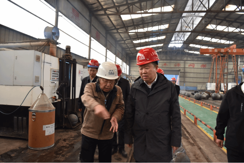 沈兴全书记带队参观了公司教师张海涛与企业联合开发的空心焊接球自动焊接系统生产线,以及公司冲压车间、下料车间和机加车间等生产情况,山西汾阳丰源网架钢结构有限公司董事长闫育智全程为沈兴全书记介绍公司规模、发展状况、空心焊接球自动焊接系统生产线的建设情况,以及面临的问题等。