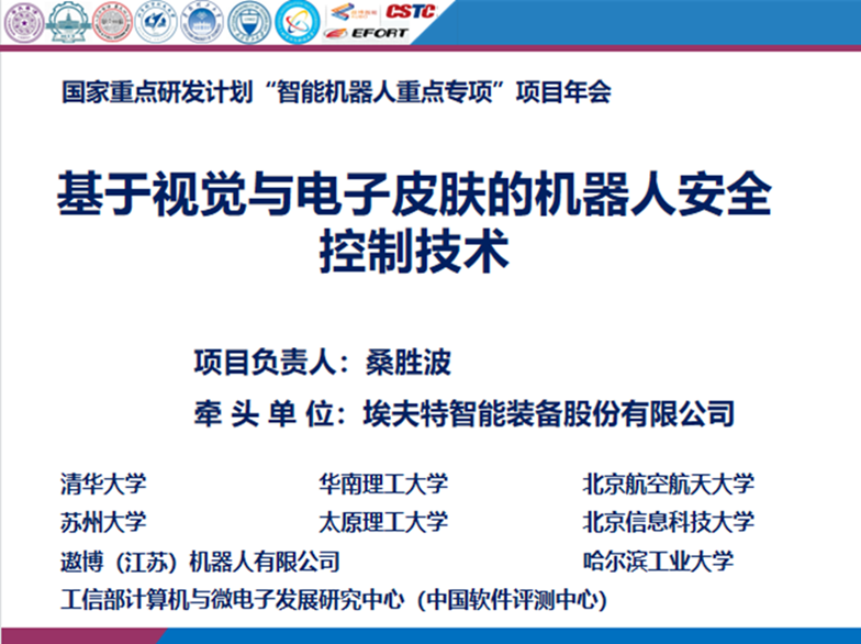 埃夫特董事长许礼进在总结时表态,埃夫特将和项目参与单位一起高质量、高标准完成本项目,推动视觉和电子皮肤技术在人机协作机器人等多机器人平台,以及焊接、喷涂、打磨、装配、搬运等多应用场景的示范应用,并结合埃夫特下一代智能机器人研发和产业化进展,将新型视觉和电子皮肤主动安全控制技术产品化成一种新型关键核心部件,并推动视觉和电子皮肤关键部件的产业化,以及在多机器人平台和多应用场景的批量应用。