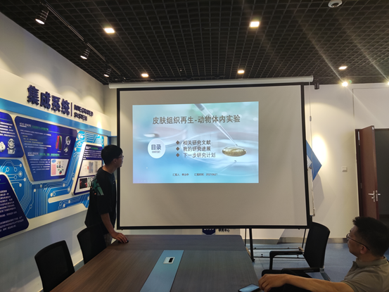 本次学术报告的汇报人为申治中博士,汇报内容包括相关研究文献介绍、相关研究进展、下一步研究计划。首先介绍了皮肤伤口愈合动物模型的研究现状,其中包括材料制备及研究、干细胞研究、细胞外泌体研究、移植物成型方法研究,并对伤口愈合情况的分析方法进行了总结和讨论。接着介绍了目前研究的进展。最后,通过参照文献中实验方法,提出目前研究中遇到问题的解决方案,做出下一步研究计划。与会的老师和同学积极参与讨论,提出了很多建设性的意见。
