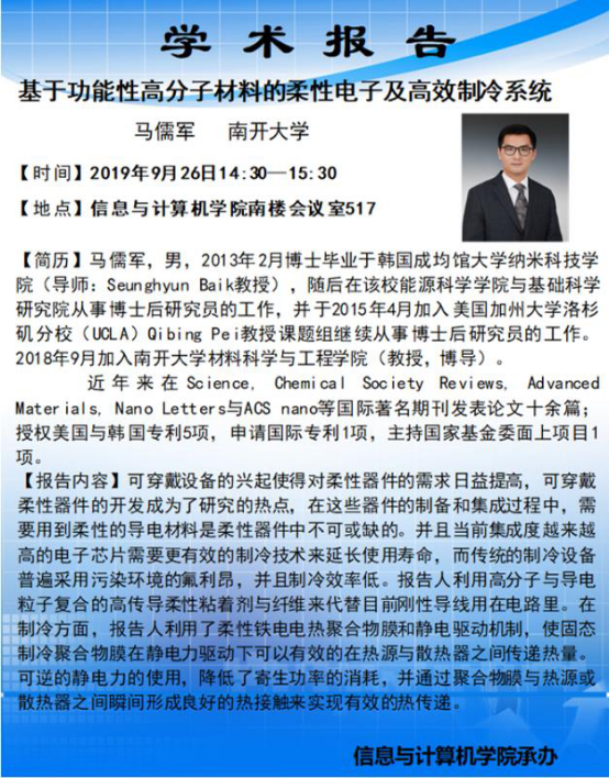 南开大学材料科学与工程公司马儒军教授-基于功能性高分子材料的柔性电子及高效制冷系统