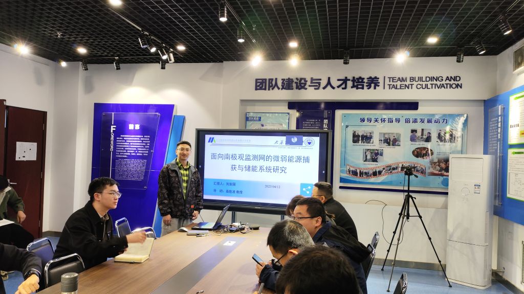 本次学术报告的汇报人为刘安国博士,汇报的内容是面向南极观测监测网的微弱能源捕获与储能系统研究。刘安国博士针对南极极端环境下能源供给难题,提出基于摩擦纳米发电机(TENG)的微弱能源捕获与储能系统方案。刘博士首先介绍了收集振动能、风能、人体运动能的摩擦纳米发电机。随后,介绍了收集人体热能/运动能的混合发电机(TT-HNG)和收集发动机低幅振动的压电/摩擦电混合发电机(C-HNG),驱动门铃、温湿度计等设备,实现TENG在南极场景的首次应用等研究进展。最后,介绍了下一步计划,聚焦双模式风力发电装置研发,目标构建风-雪-光一体化发电系统,为南极中山站气象站提供自供电解决方案。参会的各位老师员工就学术报告相关内容进行了热烈的讨论。